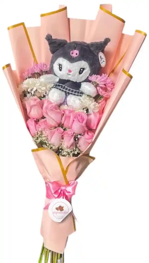 ¿Buscas un regalo que realmente hable de su personalidad? Sorprende a esa persona especial con nuestro exclusivo bouquet de rosas rosadas y un adorable pero travieso peluche de Kuromi. BOUQUET CON: 12 ROSAS ROSADAS, MARGARITAS CLANCAS LILA, PERLA ,PAPEL DECORATIVO ,MOÑO, PELUCHE KUROMI DE 25CM