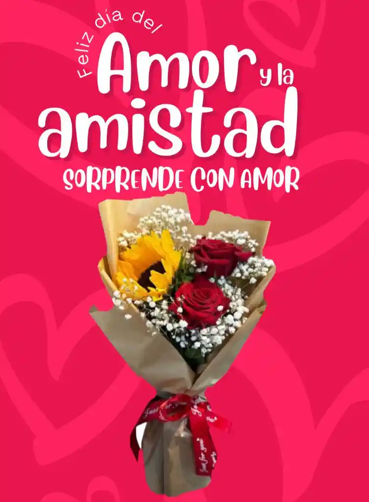 BOUQUET CON 2 ROSA Y 1 GIRASOL PERLA PAPEL CRAFT MOÑO TARJETA PERSONALIZADA