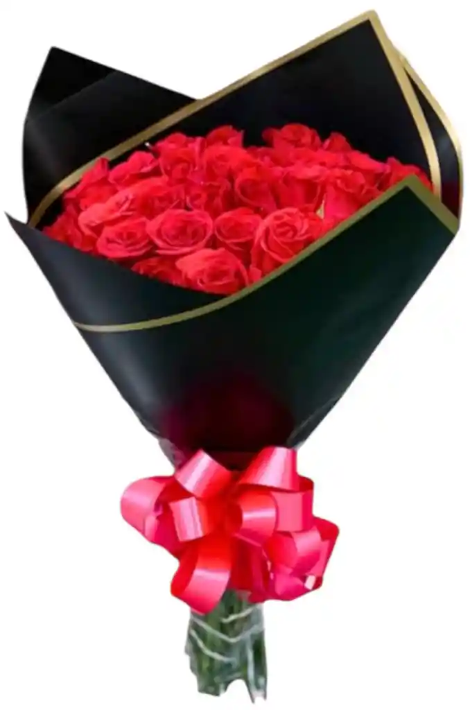 BOUQUET DE 50 ROSAS ROJAS CON PAPEL DECORATIVO MOÑO TARJETA PERSONALISADA