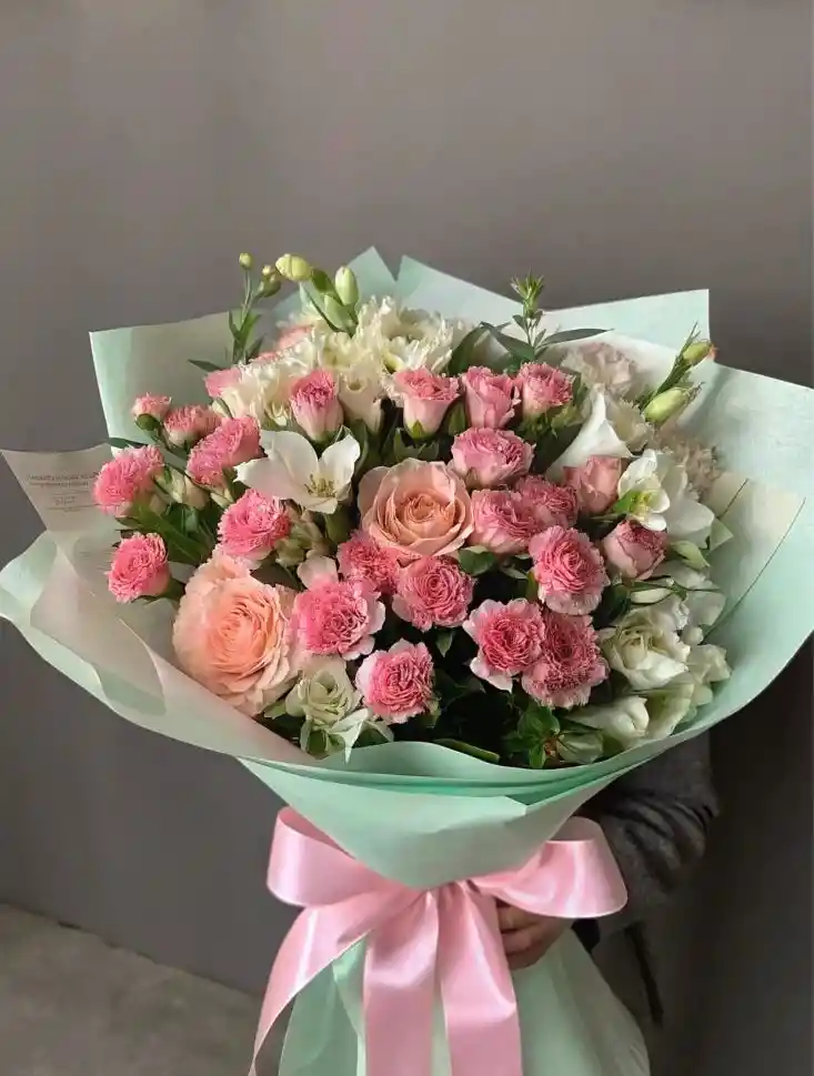 Bouquet de 12 rosa con 10 clavel Nota: La flor puede ser sustituida dependiendo la disponibilidad de color y del producto “Mensaje Personalizado” máximo de 30 caracteres (Dejar el mensaje en el chat, los comentarios no se previsualizan para la tienda por lo que si se dejan allí no podrá ser incluido).