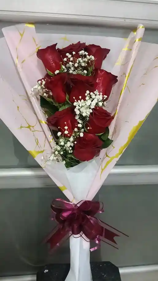 12 rosas con nubes blancas en papel coreano y su moño