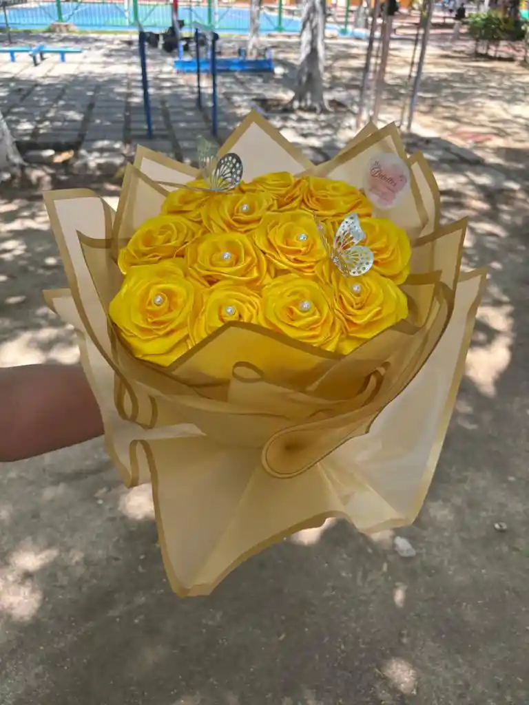 incluye 12 rosas amarillas