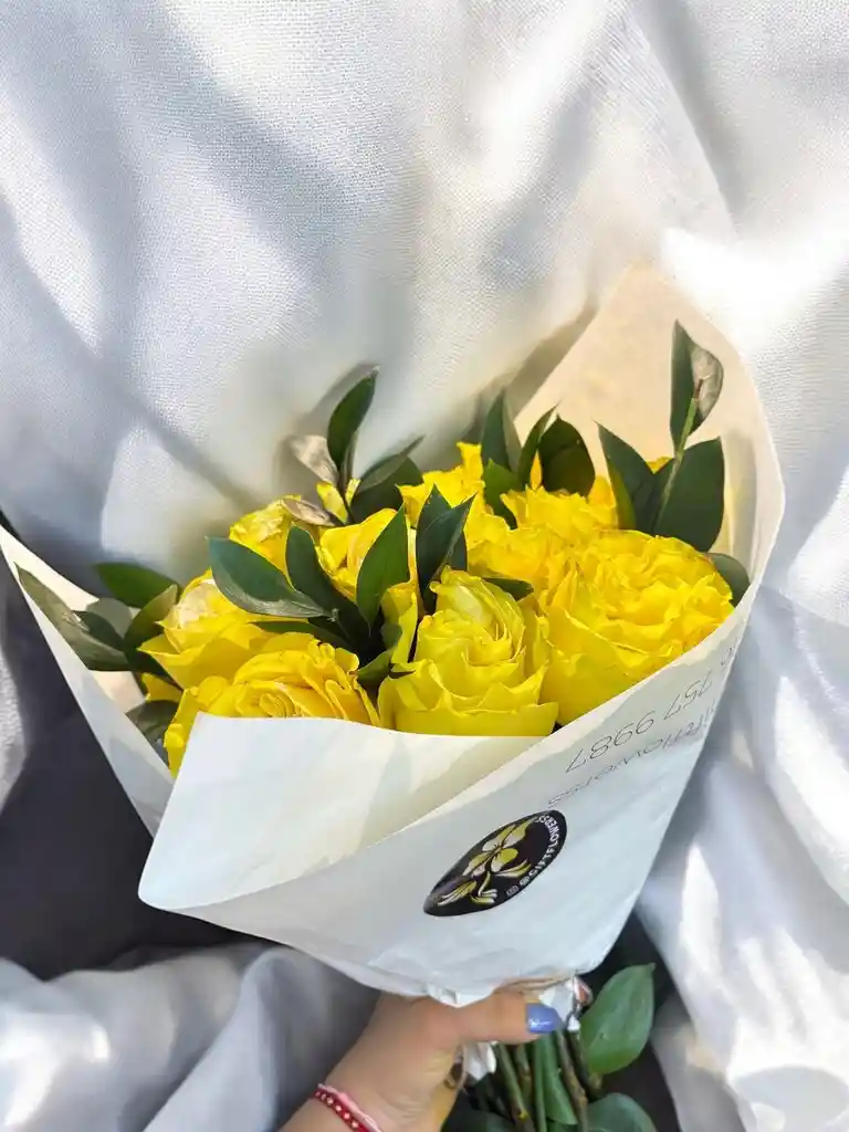 Bouquet de 12 rosas amarillas acompañadas de solidago. Nota: La flor puede ser sustituida dependiendo la disponibilidad de color y del producto “Mensaje Personalizado” máximo de 30 caracteres (Dejar el mensaje en el chat, los comentarios no se previsualizan para la tienda por lo que si se dejan allí no podrá ser incluido).