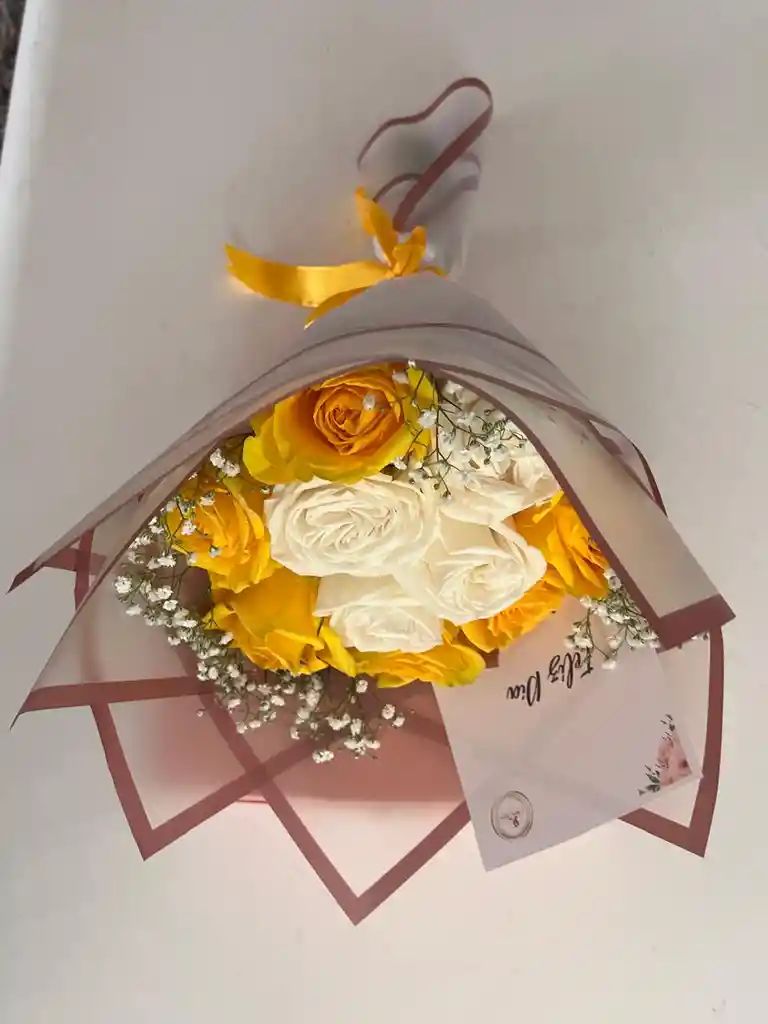 bouquet de rosas amarillas con blanco
