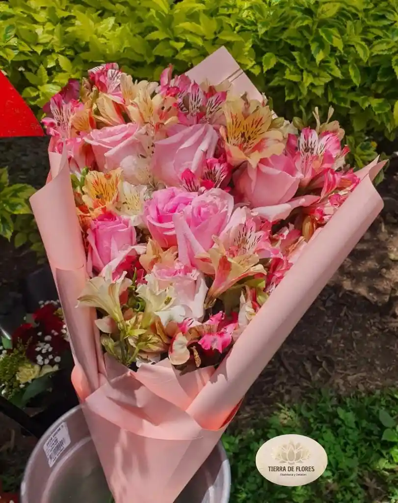 Hermoso bouquet de rosas, astromelia o margarita incluye tarjeta personalizada