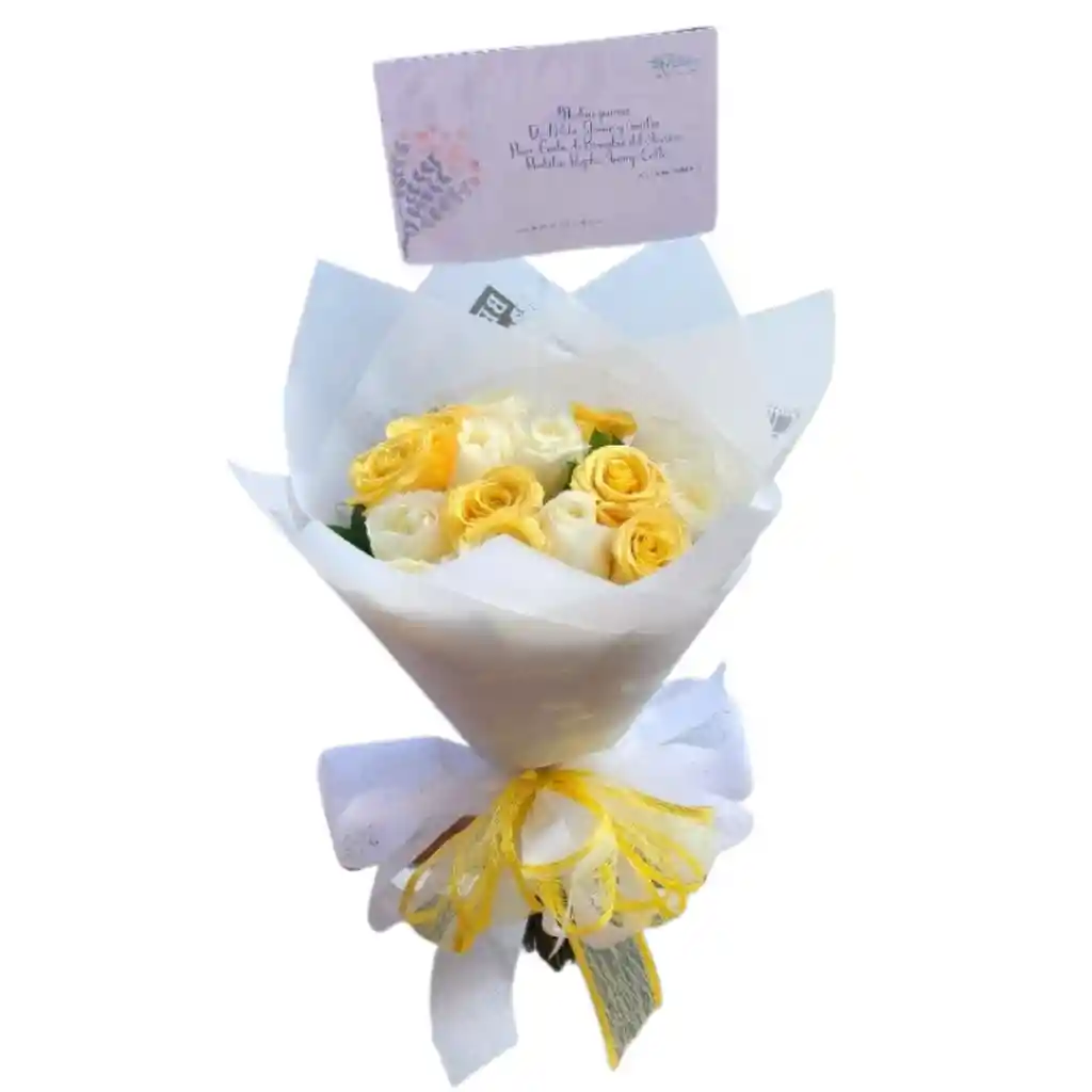 Hermoso bouquet de 15 rosas amarillas y blancas con moño decorativo, perfecto para toda ocasión.