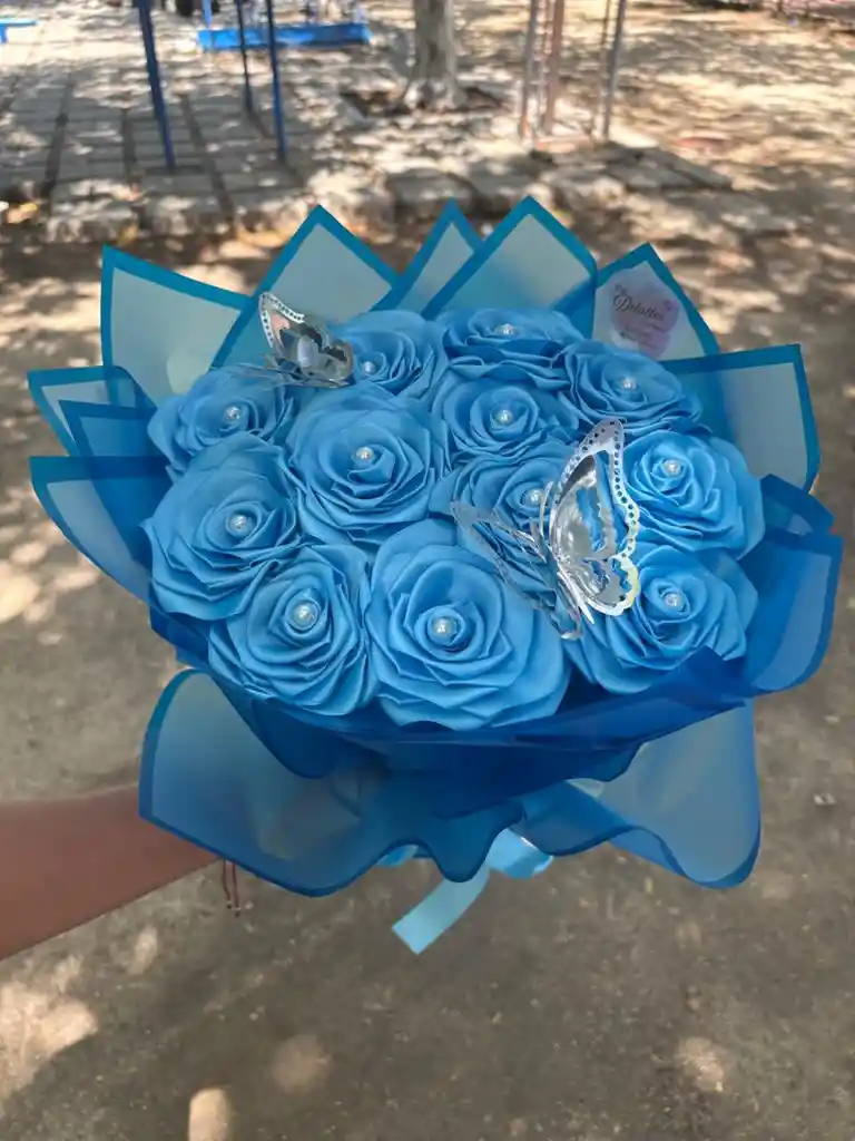 incluye 12 rosas celeste