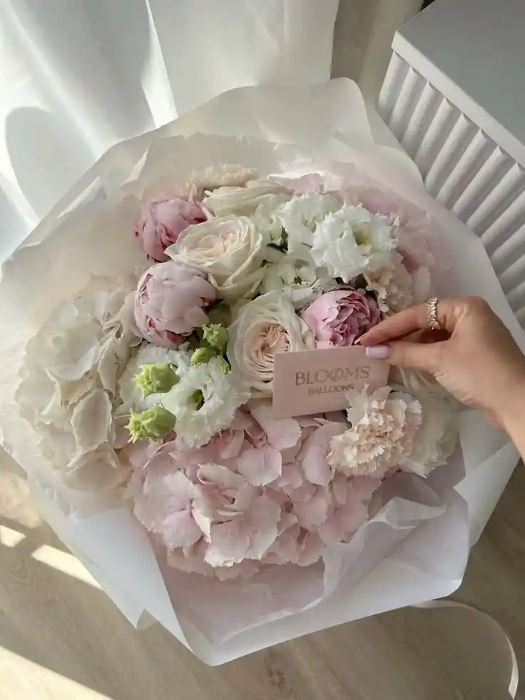 Bouquet de 12 rosas 10 clavel y 2 hortencias Nota: La flor puede ser sustituida dependiendo la disponibilidad de color y del producto “Mensaje Personalizado” máximo de 30 caracteres (Dejar el mensaje en el chat, los comentarios no se previsualizan para la tienda por lo que si se dejan allí no podrá ser incluido).