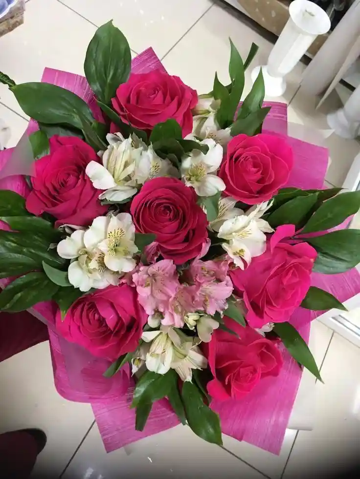 Bouquet de 6 rosas rojas con astromelia blanca. Nota: La flor puede ser sustituida dependiendo la disponibilidad de color y del producto “Mensaje Personalizado” máximo de 30 caracteres (Dejar el mensaje en el chat, los comentarios no se previsualizan para la tienda por lo que si se dejan allí no podrá ser incluido).