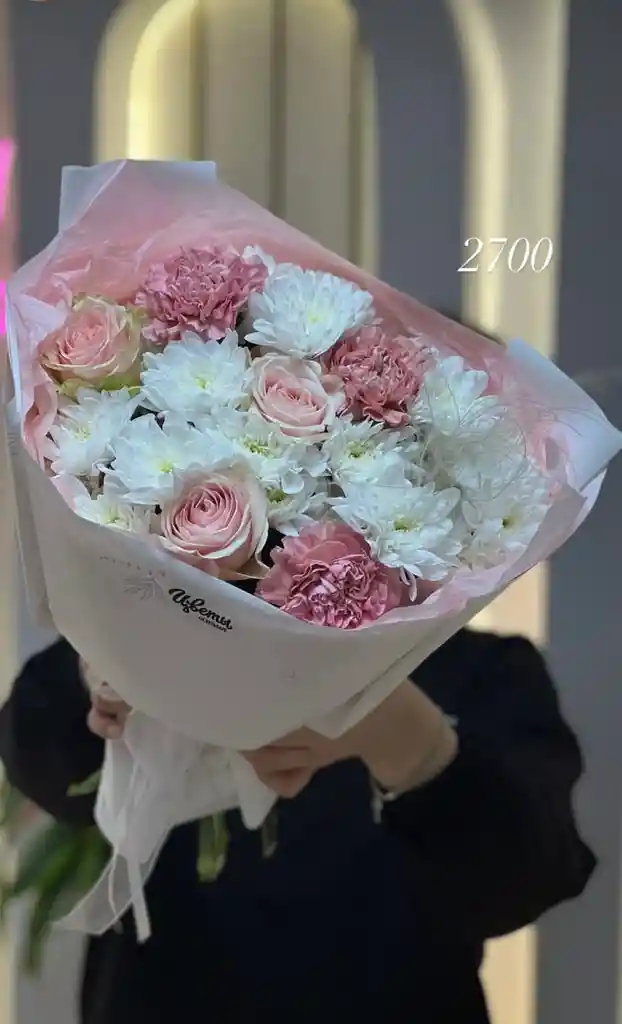 Bouquet con aprox 6 rosas 3 claveles y 10 crisantemos. Nota: La flor puede ser sustituida dependiendo la disponibilidad de color y del producto “Mensaje Personalizado” máximo de 30 caracteres (Dejar el mensaje en el chat, los comentarios no se previsualizan para la tienda por lo que si se dejan allí no podrá ser incluido).