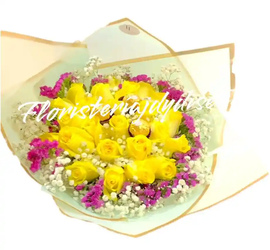 HERMOSO BOUQUETS POR 2 DOCENAS DE ROSAS TIPO EXPORTACION CON FOLLAJES (PERLITA Y SIEMPRE VIVA) ORGANIZADO EN PAPEL COREANO Y MOÑO EN CINTA DE PAPEL