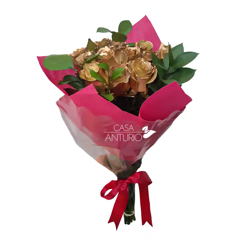 Bouquet de 12 Rosas Doradas