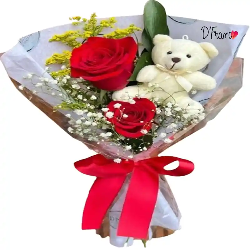 Hermoso y adorable bouquet de rosas con lindos follajes y un tierno osito para hacer tus ocasiones muy especiales!