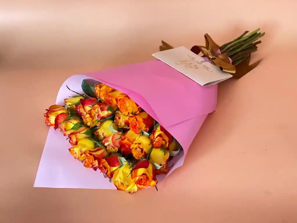 bouquet de 20 rosas naranja tipo exportacion.