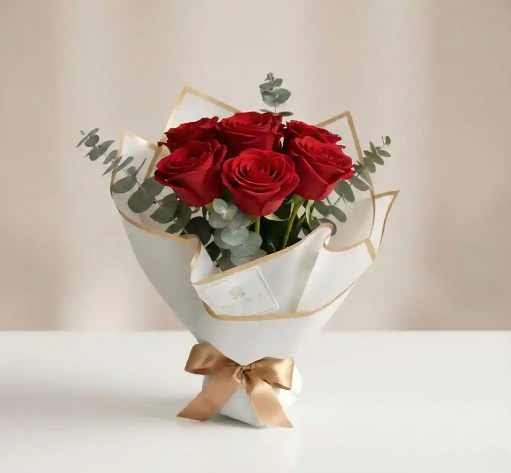 Bouquet de Rosas Rojas en Bogotá – Fruit Santé Clásico, elegante y directo al corazón. Nuestro bouquet de rosas rojas premium con eucalipto llega en empaque blanco con filo dorado y lazo de satín. Un detalle minimalista que habla de amor y decisión. Entrega el mismo día en Bogotá (pedidos antes de 5:00 p.m.). ¿Para quién y para qué momento es ideal? Amor romántico: pareja que valoras y quieres sorprender hoy. Aniversarios y fechas especiales: celebra con un gesto limpio y significativo. Reconciliación y perdón: un “lo siento” con intención y elegancia. San Valentín / Día del Amor y la Amistad: símbolo de pasión y compromiso. Cumpleaños de tu persona favorita: impacto visual inmediato. Propuestas y momentos únicos: acompaña ese “sí” con un ícono atemporal. Detalles del bouquet Composición sugerida: rosas rojas seleccionadas (cantidad según talla) + eucalipto silver dollar. Presentación: papel blanco premium con ribete dorado y lazo de satín Fruit Santé. Incluye: tarjeta para mensaje personalizado. Nota: la selección puede variar levemente según disponibilidad estacional, manteniendo el estilo y la paleta.