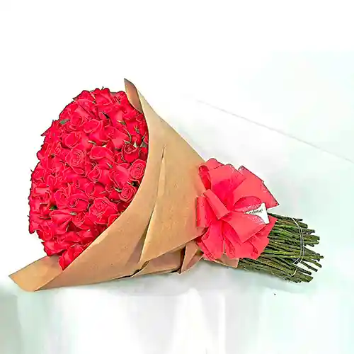 Bouquet de 30 rosas rojas de exportación decorado con papel Kraf y moño decorativo para enamorar a una mujer en sus cumpleaños o fechas tan especiales San Valentín o Amor y amistad. ideal para el Amor