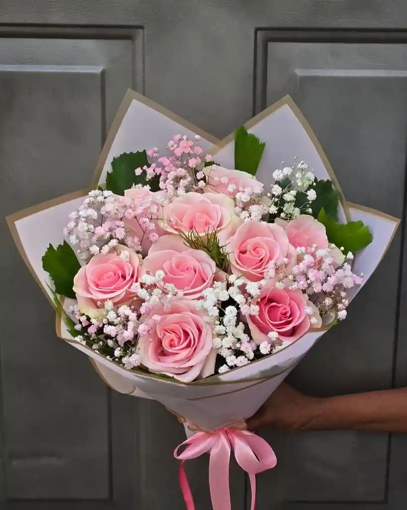 hermoso bouquet de 12 rosas en tonos rosados, hermoso arreglo para impresionar y enamorar
