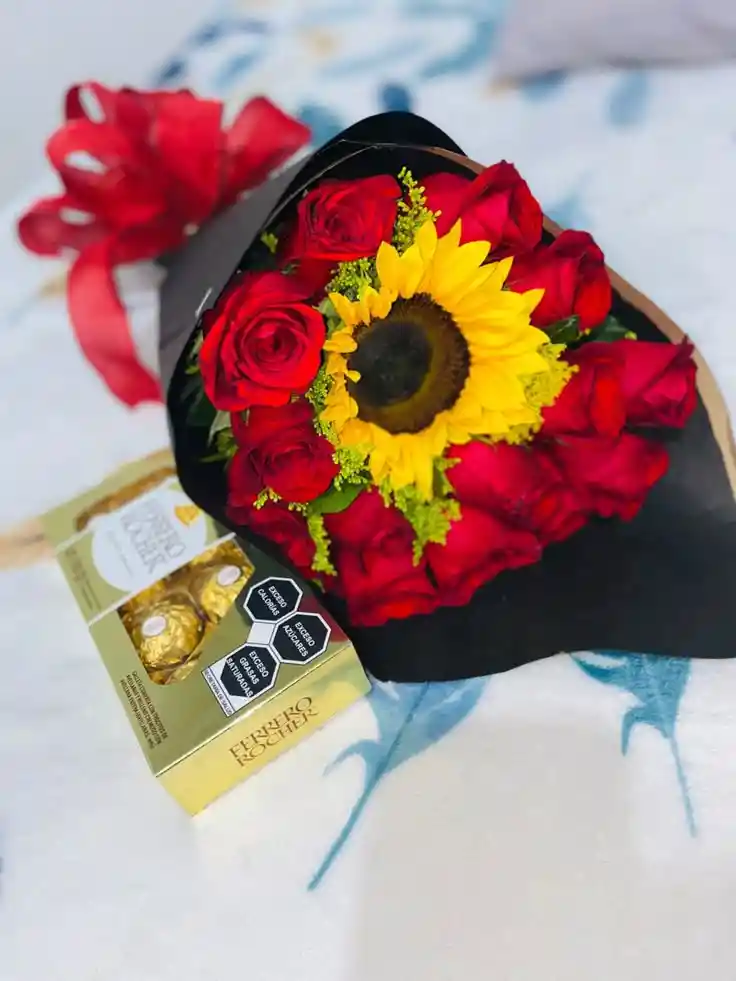 🌹 Amor en cada detalle Regala un momento único con nuestro ramo de rosas rojas y chocolates Ferrero. Un detalle que habla por ti, que acaricia el alma y enamora al corazón. 💘