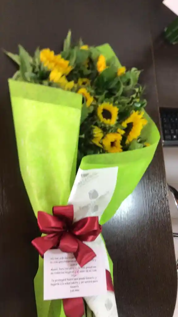 BOUQUET EN PAPEL MICRO FIBRA IMPORTADO CON DOCENA GIRASOLES Y FOLLAJES de color Amarillo ideal para el Agradecimiento