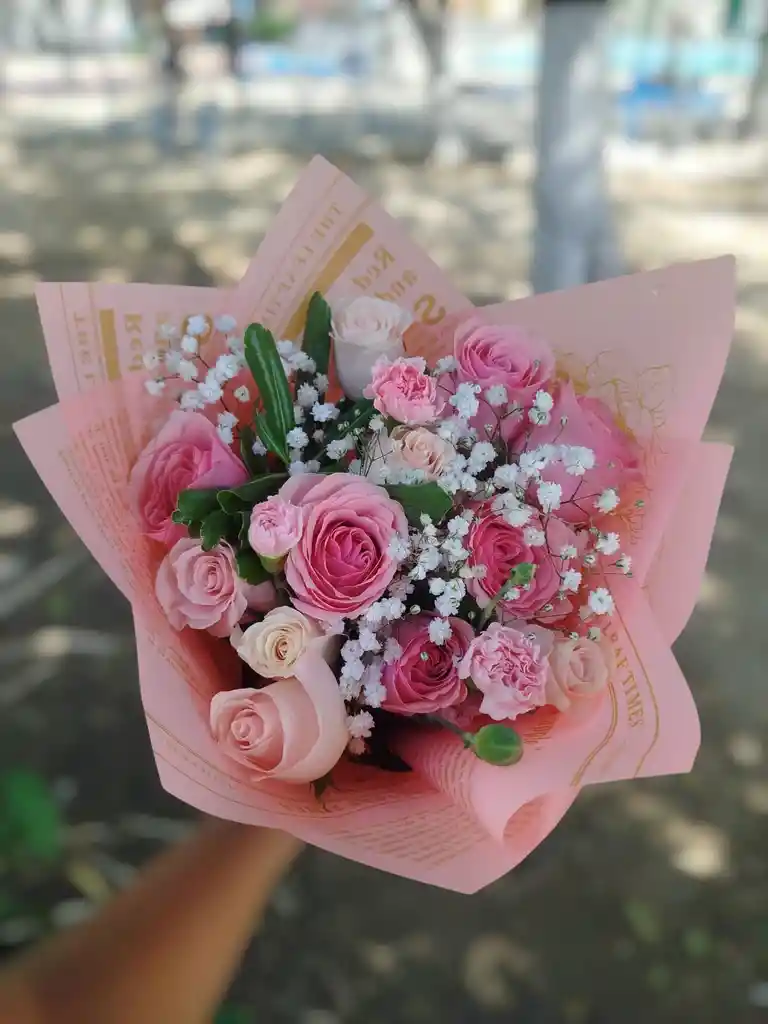 incluye 12 rosas y clavelilla