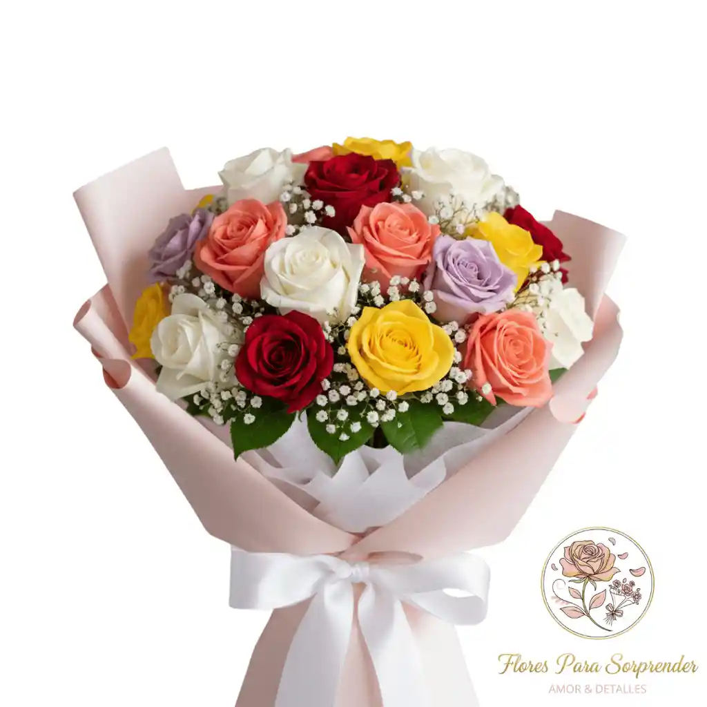 Bouquet con rosas frescas y follaje, diseñado para sorprender con elegancia. Perfecto para aniversarios, cumpleaños y fechas importantes.