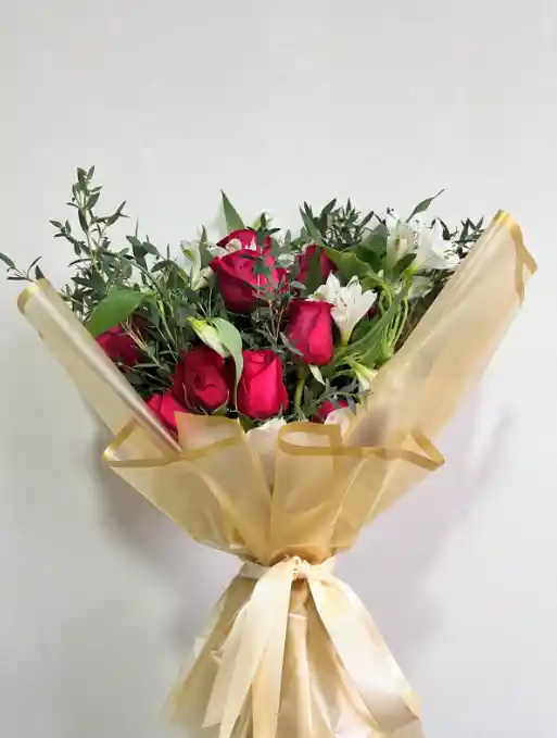 12 rosas + 10 astromelias + parvifolia