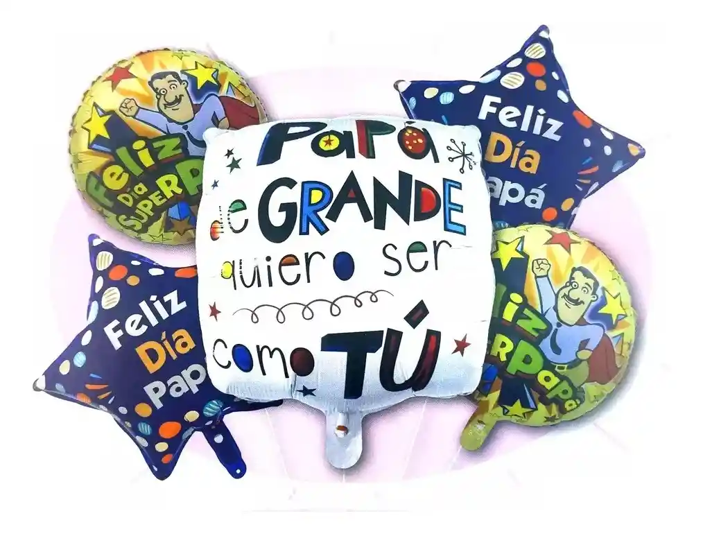 *********************GLOBOS Y PELUCHES MASMELO********************* Por tu compra te llevas. 2 Globo circular feliz día Papá 45x45cm 2 Globo estrella azul felia día Papá 45x45cm 1 GLobo papá de grande quiero ser como tú 45x45cm *Los globos se entregan desinflados, tu compra no incluye el montaje ni la decoración, el servicio de armado no lo tenemos disponible. sin embargo te damos todas las instrucciones para hacer de modo profesional. Si deseas adicionar otros articulos a tu compra puedes escribirnos, recuerda que Somos Globos y Peluches Masmelo Si necesitas variación en los colores, colocar un número, más globos o realizar otros cambios en el diseño original escribenos para ver si podemos hacerlo. Tenemos todo lo necesario para tus decoraciones, somos lo último en tendencias mundiales decorativas. Tenemos disponible: Vasos, platos, manteles, guirnaldas, cubiertos, globos de todo tipo, números, letreros, vela, Etc. Puedes encontrar los articulos de nuestra tienda en el siguiente link, copia y pega, si no encuentas lo que necesitas escribenos: https://www.rappi.com.co/tiendas/900280040-globosypeluchesmasmelo-mt-enc/decoracion-para-fiestas/globos-y-bombas