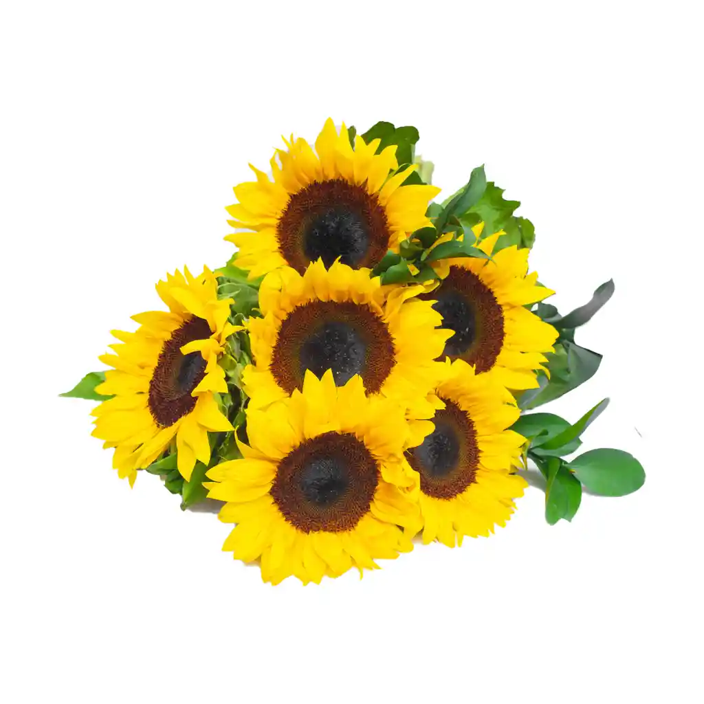 Arreglo de 6 girasoles de 30 cm de largo aproximadamente. Incluye decoración y tarjeta (Indicar en el chat el mensaje).