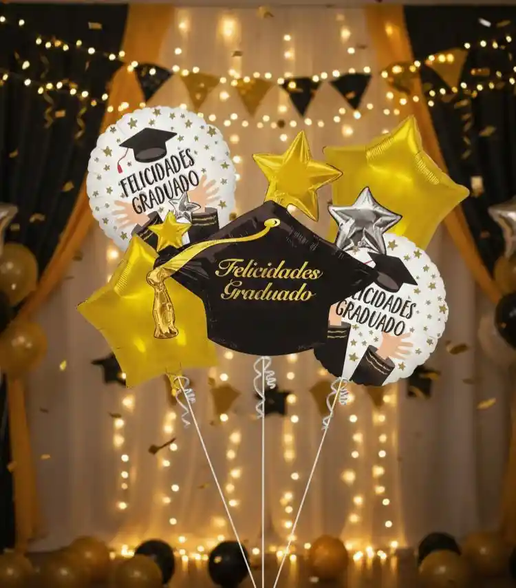 🎓🎈 BOUQUET DE GLOBOS GRADO – DIPLOMA Y BIRRETE X5 🎈🎓 Celebra ese gran logro académico con una decoración especial y llena de orgullo. Este bouquet de globos con diseño de diploma y birrete es perfecto para graduaciones de preescolar, primaria, bachillerato o universidad. ✨ Características destacadas: 🎉 Incluye 5 globos decorativos 🎓 Diseños de grado: diploma y birrete 📸 Ideales para fotos y decoración principal 🥳 Perfectos para fiestas y celebraciones de graduación 🎊 Aportan un toque elegante y festivo 🌟 Haz que ese momento inolvidable luzca aún más especial con una decoración acorde al éxito alcanzado. ¡Celebra el esfuerzo y el triunfo a lo grande! 🎓✨