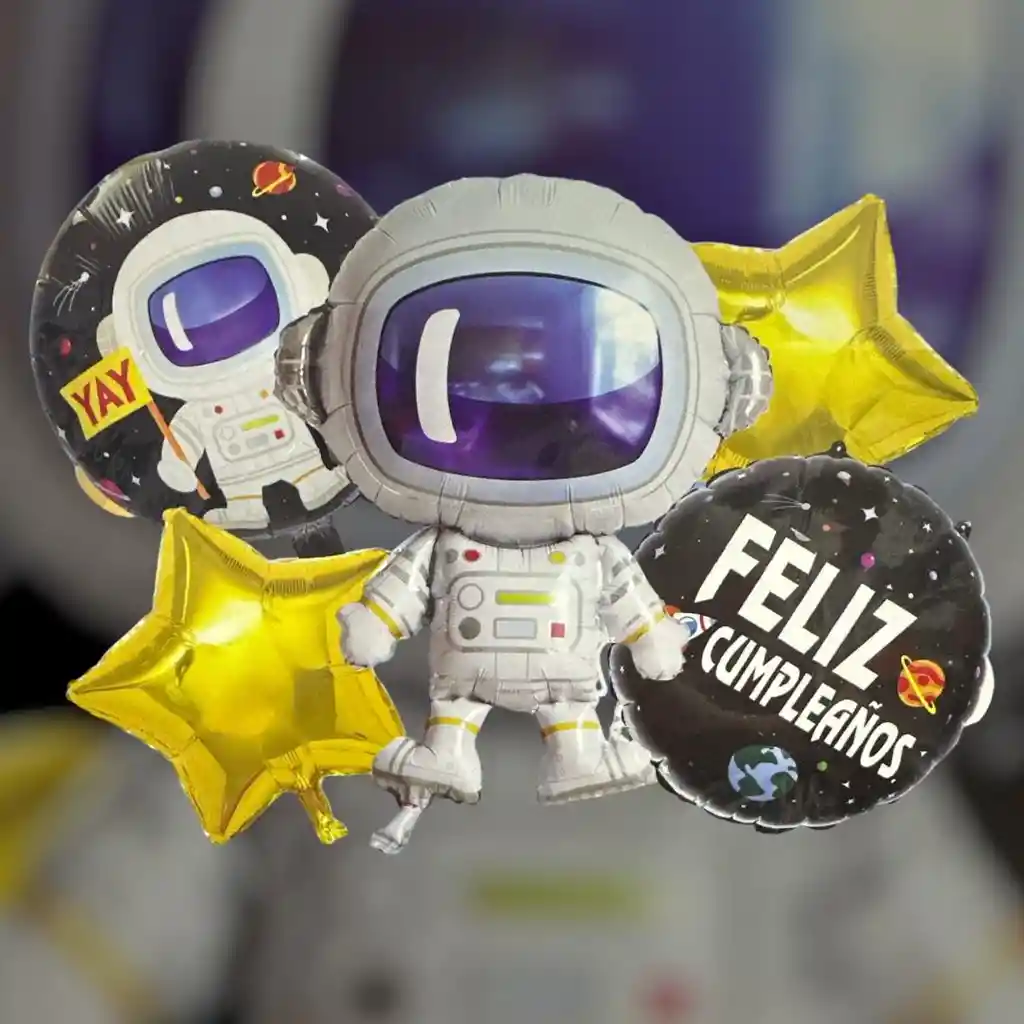 📌 Puede llegar cualquiera de los dos diseños disponibles, ambos igual de increíbles. Lleva la magia del espacio a tus celebraciones con este divertido bouquet de 5 globos de alta calidad, resistentes y duraderos. Incluye un gran globo central con figura de astronauta, globos redondos con diseños espaciales y estrellas metálicas para darle un toque galáctico a la decoración. Perfecto para cumpleaños, fiestas temáticas o cualquier ocasión especial. ✨🌌