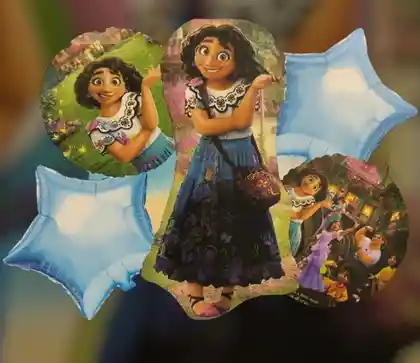 BOUQUET GLOBO BOMBA PERSONAJE INFANTIL ENCANTO ESTRELLA AZUL X5