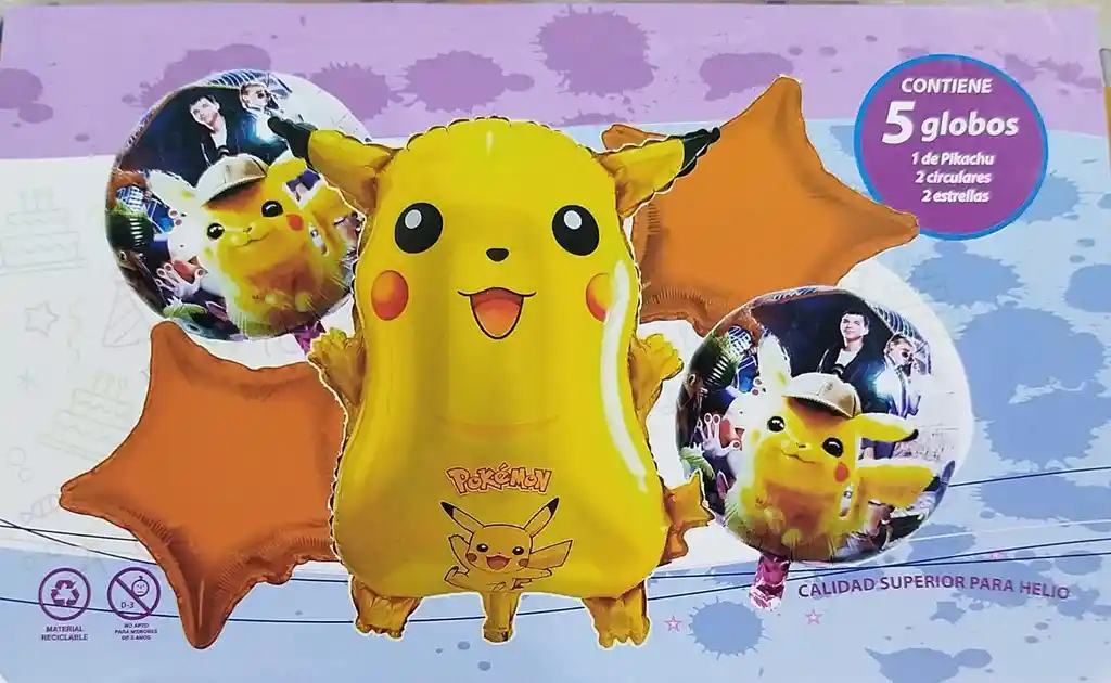 BOUQUET GLOBO BOMBA PERSONAJE INFANTIL POKEMON CON POKEBOLAS X5