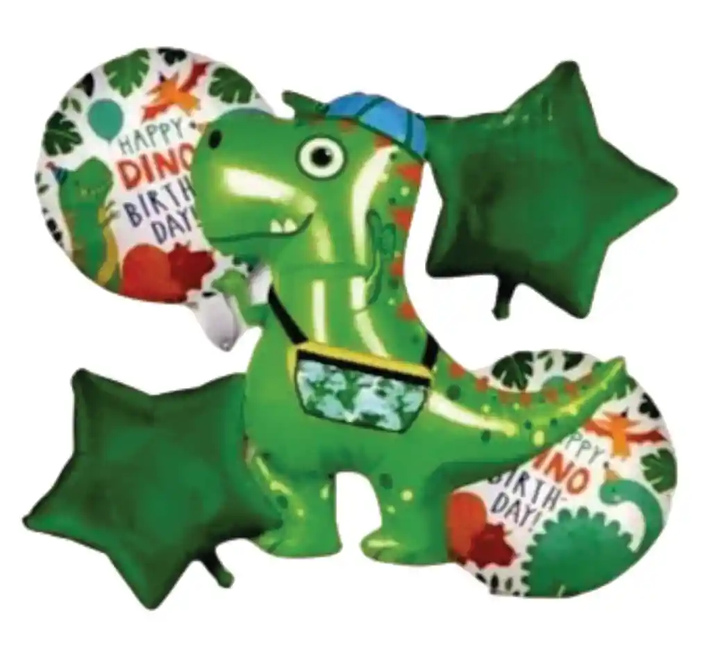 bouquet de globos de dinosaurio para niños es una decoración divertida y colorida que puede incluir una combinación de globos con formas, colores y diseños temáticos de dinosaurios Estilo: Temática colorida y alegre Ideal para cumpleaños o fiestas temáticas de dinosaurios Incluye: 5 unidades puede llegar en esto diseño y color o el que se encuentre disponible.