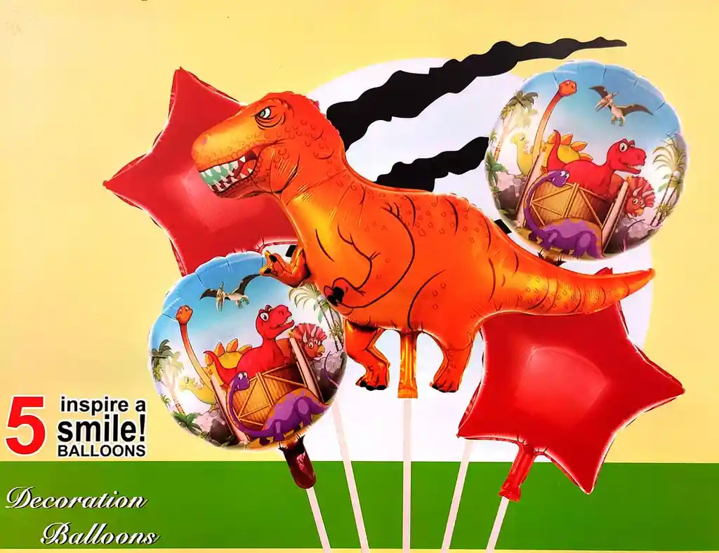 *********************GLOBOS Y PELUCHES MASMELO********************* ————————–Somos Mercado Líder Platinum———————— Por tu compra Llevas: 1 Globo tiranosaurio 70x65cm 2 Globo rojo estrella 45x45cm 2 Globo circular dinosaurio 45x45cm *Los globos se entregan desinflados, tu compra no incluye el montaje ni la decoración, el servicio de armado no lo tenemos disponible. sin embargo te damos todas las instrucciones para hacer de modo profesional. Si deseas adicionar otros artículos a tu compra puedes escribirnos, recuerda que Somos Globos y Peluches Masmelo Si necesitas variación en los colores, colocar un número, más globos o realizar otros cambios en el diseño original escríbenos para ver si podemos hacerlo. Tenemos todo lo necesario para tus decoraciones, somos lo último en tendencias mundiales decorativas. Tenemos disponible: Vasos, platos, manteles, guirnaldas, cubiertos, globos de todo tipo, números, letreros, vela, Etc. Puedes encontrar los artículos de nuestra tienda en el siguiente link, copia y pega, si no encuentras lo que necesitas escríbenos: https://www.rappi.com.co/tiendas/900280040-globosypeluchesmasmelo-mt-enc/decoracion-para-fiestas/globos-y-bombas