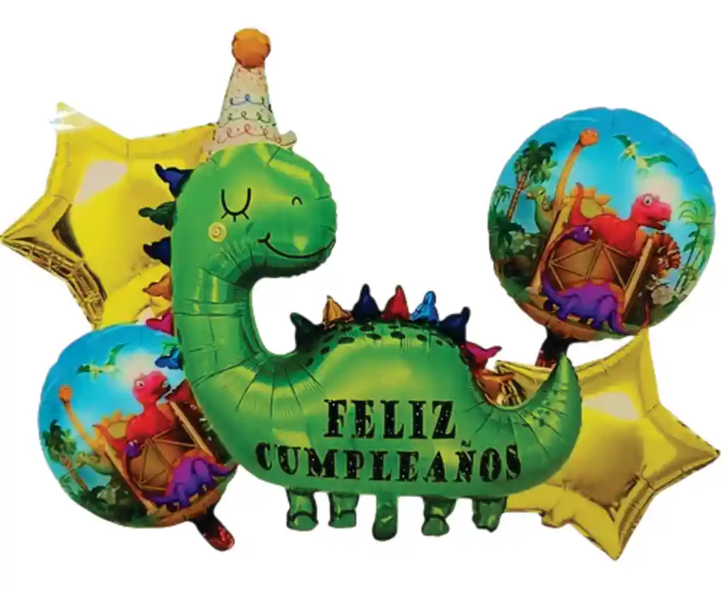 Bouquet de Globos Dinosaurios - 5 Unidades (Colores Vivos) ¡Haz rugir la diversión con este bouquet de globos de dinosaurios! Incluye 5 globos en colores vibrantes con diseños divertidos de dinos, perfectos para fiestas infantiles, cumpleaños temáticos o sorprender a los pequeños fans de estos gigantes prehistóricos. Dale un toque salvajemente colorido a cualquier celebración. Los globos llegan desinflados.