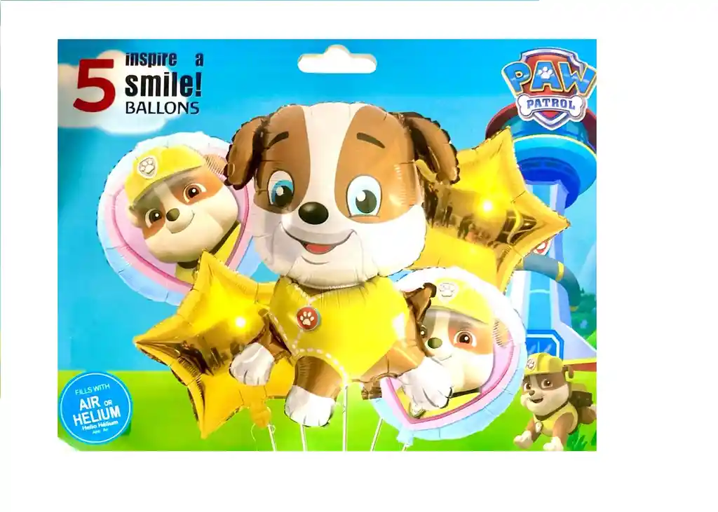 PAW PATROL 5 PIEZAS 2 ESTRELLAS 2 GLOBOS REDONDOS 1 PAW PATROL NIÑA