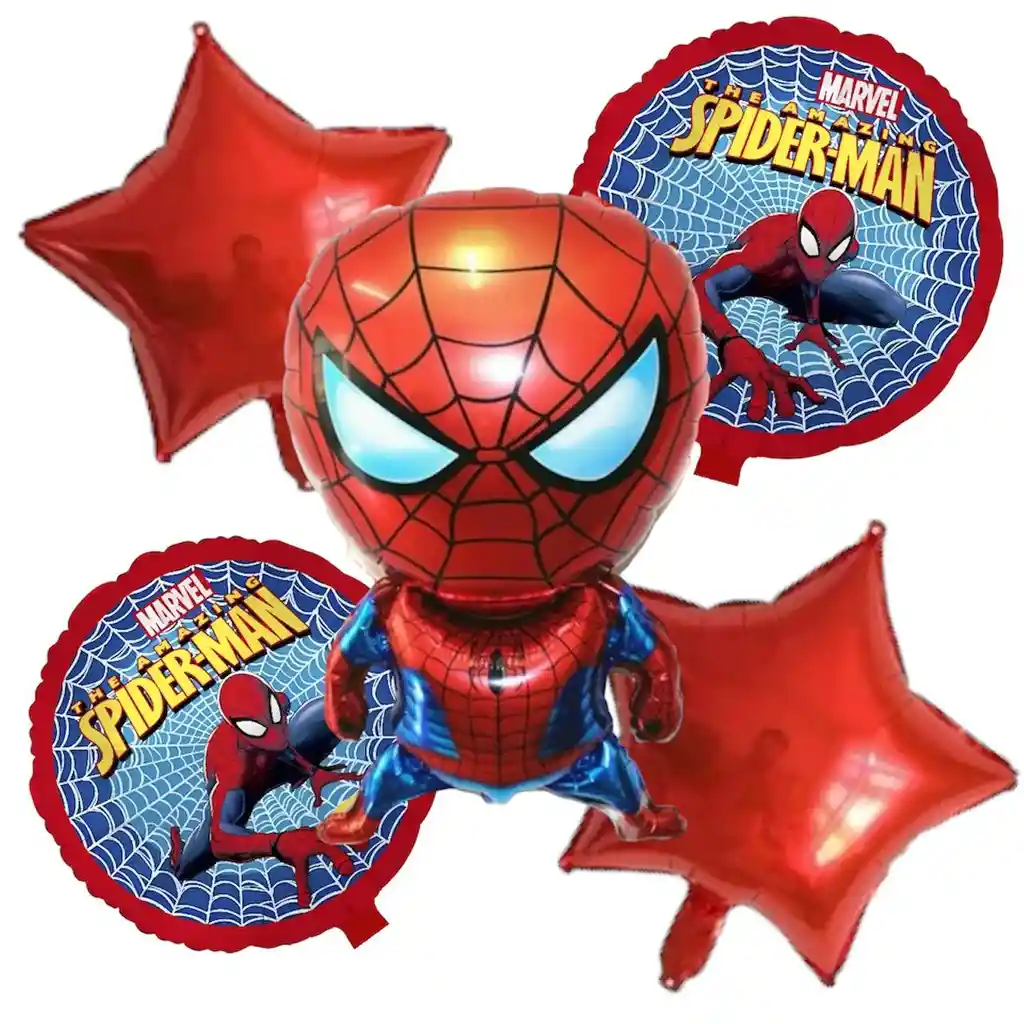 BOUQUET SPIDERMAN 5 PIEZAS 2 ESTRELLAS 2 GLOBOS REDONDOS 1 SPIDERMAN