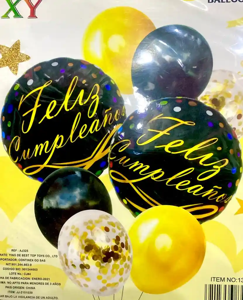 GLOBO METALIZADO BOUQUET 8 PIEZAS NEGRO DORADO CONTIENE 2 GLOBOS METALIZADOS FELIZ CUMPLEAÑOS 18", 2 GLOBO CRISTAL CONFETI Y 2 BOMBA LATEX NEGRAS, 2 GLOBOS LATEX DORADOS R12. SE ENVIA DESINFLADO Para inflar su letrero, números, globos metalizados y globos de látex, tenemos disponible en nuestra tienda el INFLADOR MANUAL. No olvide incluirlo en su pedido