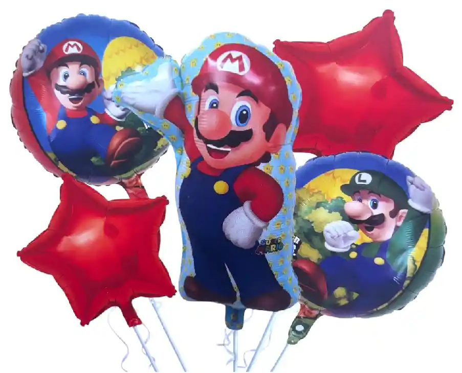 Este Bouquet de Globos Súper Mario Bros es el complemento perfecto para tu próxima fiesta temática. Con 5 piezas que incluyen 1 figura, 2 estrellas y 2 globos redondos estampados, este set es ideal para decorar cualquier ocasión especial. Los globos tienen una forma de figura y están fabricados en papel metalizado de alta calidad, con una textura mate que los hace lucir elegantes. Además, su tamaño inflado de 65 cm para la figura principal y 45 cm para los globos acompañantes los hace destacar en cualquier ambiente. Perfectos para cumpleaños, decoraciones y fiestas, ¡no te pierdas la oportunidad de añadir un toque divertido con estos globos metalizados de Super Mario Bros a tu evento!. Se envia desinflado