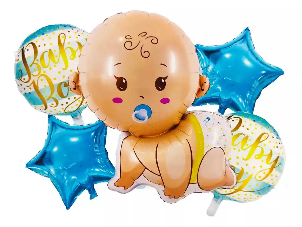 *********************GLOBOS Y PELUCHES MASMELO********************* Somos Mercado Líder Platinum Por tu compra te llevas: 1 Globo bebe niño gateando 65x45cm 2 Globo estrella azul 45x45cm 2 Globo circular baby boy 45x45cm *Los Globos se entregan desinflados, tu compra no incluye el montaje ni la decoración, el servicio de armado no lo tenemos disponible. sin embargo te damos todas las instrucciones para hacer de modo profesional. Si deseas adicionar otros artículos a tu compra puedes escribirnos, recuerda que Somos Globos y Peluches Masmelo Si necesitas variación en los colores, colocar un número, más Globos o realizar otros cambios en el diseño original escríbenos para ver si podemos hacerlo. Tenemos todo lo necesario para tus decoraciones, somos lo último en tendencias mundiales decorativas. Tenemos disponible: Vasos, platos, manteles, guirnaldas, cubiertos, Globos de todo tipo, números, letreros, vela, Etc.