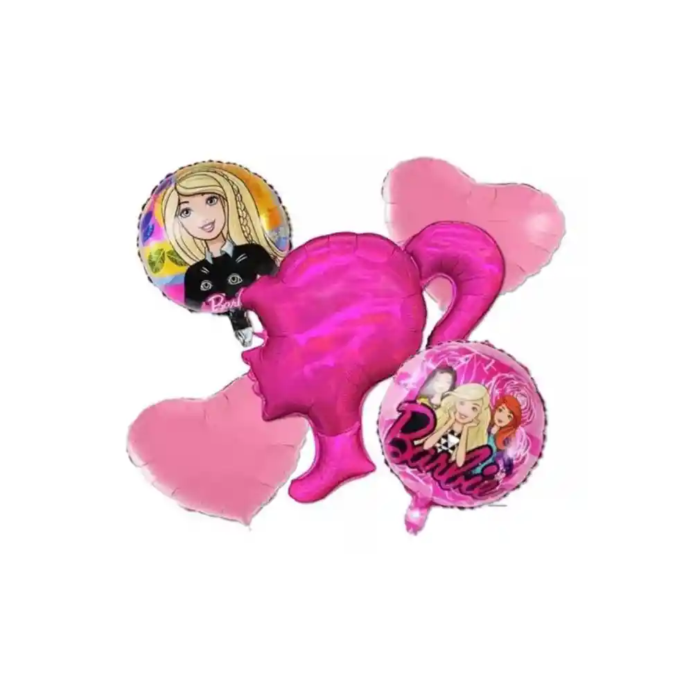Bouquet Barbie ¡Celebra la fiesta de tus sueños con el Bouquet Barbie! Este set de globos es perfecto para cualquier evento, ya sea un cumpleaños, una fiesta de princesas o una simple celebración. El Bouquet Barbie incluye dos globos metalizados redondos, dos globos con forma de corazón y un globo con la figura de la cara de Barbie