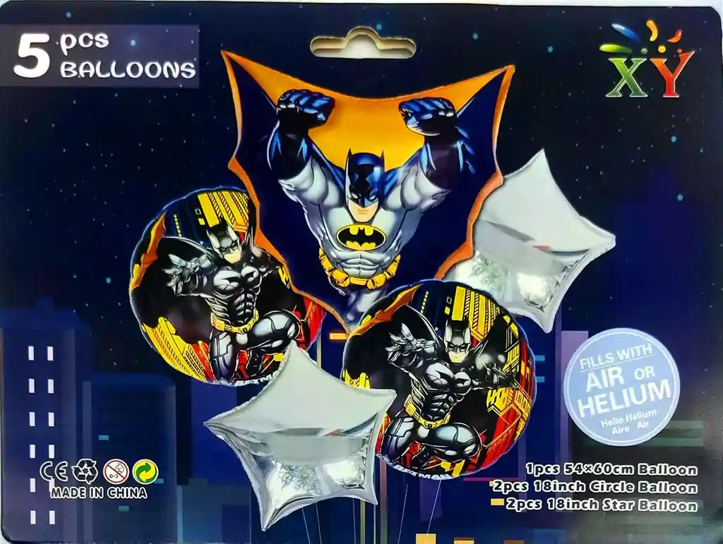 *********************GLOBOS Y PELUCHES MASMELO********************* Por tu compra te llevas. 2 Globo estrella plateado 45x45cm 2 Globo circulo heroe Batman 45×45 cm 1 Globo Batman 65x45cm *Los globos se entregan desinflados, tu compra no incluye el montaje ni la decoración, el servicio de armado no lo tenemos disponible. sin embargo te damos todas las instrucciones para hacer de modo profesional. Si deseas adicionar otros articulos a tu compra puedes escribirnos, recuerda que Somos Globos y Peluches Masmelo Si necesitas variación en los colores, colocar un número, más globos o realizar otros cambios en el diseño original escribenos para ver si podemos hacerlo. Tenemos todo lo necesario para tus decoraciones, somos lo último en tendencias mundiales decorativas. Tenemos disponible: Vasos, platos, manteles, guirnaldas, cubiertos, globos de todo tipo, números, letreros, vela, Etc. Puedes encontrar los articulos de nuestra tienda en el siguiente link, copia y pega, si no encuentas lo que necesitas escribenos: https://www.rappi.com.co/tiendas/900280040-globosypeluchesmasmelo-mt-enc/decoracion-para-fiestas/globos-y-bombas