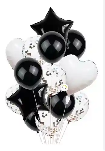 BOUQUET GLOBOS BOMBAS ESTRELLA Y CORAZONES X8 PCS
