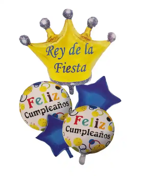 BOUQUET GLOBOS BOMBAS FELIZ CUMPLEAÑOS REY DE LA FIESTA X 5UND