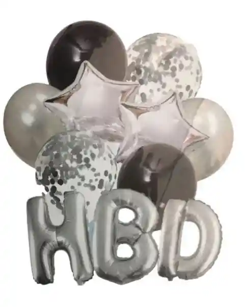 BOUQUET GLOBOS BOMBAS HBD X11 UNDS PLATEADO