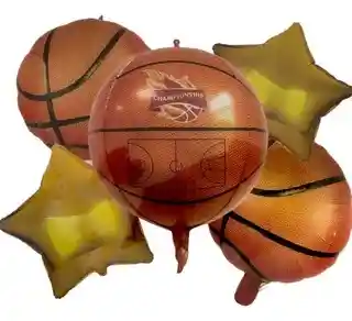 🏀🎈 Bouquet de Globos Bombas – Set x5 Globos Baloncesto Naranja Bouquet decorativo compuesto por 5 globos con diseño de baloncesto en color naranja, perfecto para cumpleaños, fiestas temáticas y celebraciones de amantes del básquet. Ideal para decorar espacios o como un detalle especial para sorprender.