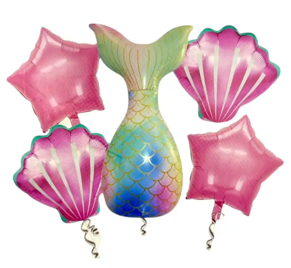 🧜♀️✨🎈 Bouquet de Globos Bombas – Set x5 Globos Estrella Cola de Sirena Bouquet decorativo compuesto por 5 globos tipo estrella con diseño cola de sirena, perfecto para fiestas temáticas, cumpleaños infantiles y celebraciones mágicas. Sus colores llamativos y estilo fantasía lo hacen ideal para decorar o regalar.