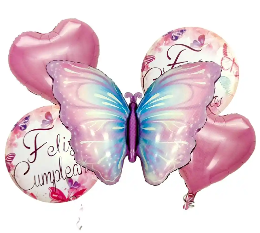 🦋❤️🎈 Bouquet de Globos Bombas – Set x5 Globos Corazones Mariposa Bouquet decorativo compuesto por 5 globos con diseño de corazones y mariposas, perfecto para celebraciones románticas, cumpleaños, aniversarios y fechas especiales. Su estilo delicado y colorido lo hace ideal para decorar espacios o como un detalle especial para regalar.