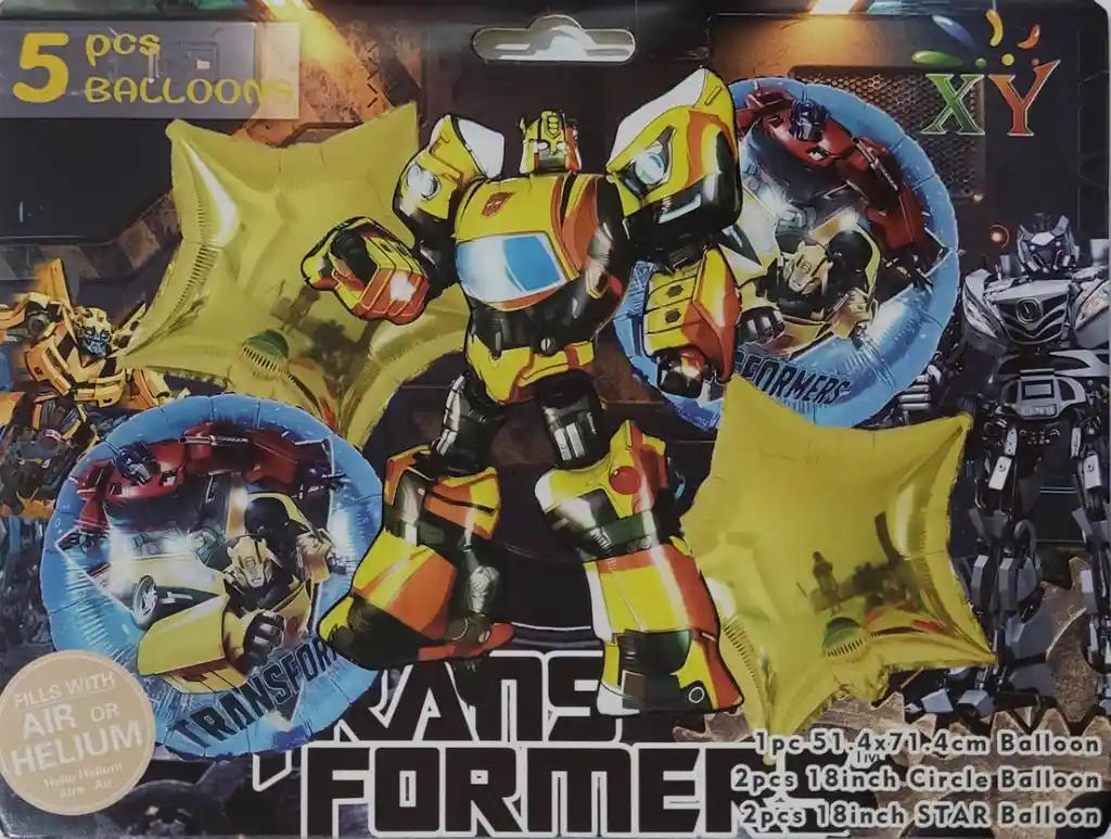 *********************GLOBOS Y PELUCHES MASMELO********************* Te damos toda la asesoria para que tú puedas armar tu propio arco Por tu compra te llevas: 1 Globo Bumblebee 51x71cm 2 Globo circulo Transformers 45x45cm 2 Globo estrella dorada 45x45cm *Los globos se entregan desinflados, tu compra no incluye el montaje ni la decoración, el servicio de armado no lo tenemos disponible. sin embargo te damos todas las instrucciones para hacer de modo profesional. Si deseas adicionar otros articulos a tu compra puedes escribirnos, recuerda que Somos Globos y Peluches Masmelo Si necesitas variación en los colores, colocar un número, más globos o realizar otros cambios en el diseño original escribenos para ver si podemos hacerlo. Tenemos todo lo necesario para tus decoraciones, somos lo último en tendencias mundiales decorativas. Tenemos disponible: Vasos, platos, manteles, guirnaldas, cubiertos, globos de todo tipo, números, letreros, vela, Etc. Puedes encontrar los articulos de nuestra tienda en el siguiente link, copia y pega, si no encuentas lo que necesitas escribenos: https://www.rappi.com.co/tiendas/900280040-globosypeluchesmasmelo-mt-enc/decoracion-para-fiestas/globos-y-bombas