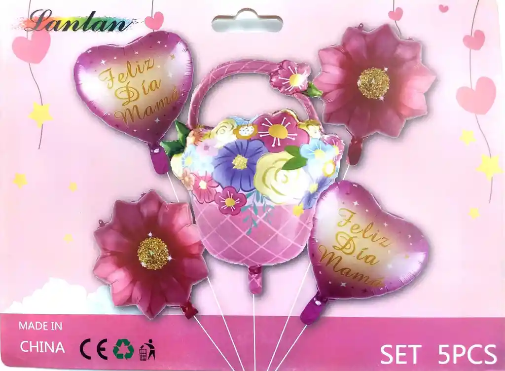 *********************GLOBOS Y PELUCHES MASMELO********************* Por tu compra te llevas. 2 Globo flores fucsia 45x45cm 2 Globo corazón feliz día mamá 45x45cm 1 Globo canasta flores 60x45cm 1 Pitillo para inflar globos *Los globos se entregan desinflados, tu compra no incluye el montaje ni la decoración, el servicio de armado no lo tenemos disponible. sin embargo te damos todas las instrucciones para hacer de modo profesional. Si deseas adicionar otros articulos a tu compra puedes escribirnos, recuerda que Somos Globos y Peluches Masmelo Si necesitas variación en los colores, colocar un número, más globos o realizar otros cambios en el diseño original escribenos para ver si podemos hacerlo. Tenemos todo lo necesario para tus decoraciones, somos lo último en tendencias mundiales decorativas. Tenemos disponible: Vasos, platos, manteles, guirnaldas, cubiertos, globos de todo tipo, números, letreros, vela, Etc. Puedes encontrar los articulos de nuestra tienda en el siguiente link, copia y pega, si no encuentas lo que necesitas escribenos: https://www.rappi.com.co/tiendas/900280040-globosypeluchesmasmelo-mt-enc/decoracion-para-fiestas/globos-y-bombas